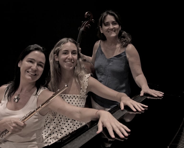 Discover classical music composed by women, performed by flutist María José Clemente, cellist Julia Roca, and pianist Carla Gómez.