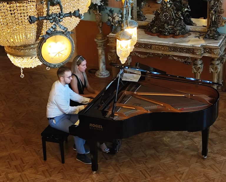 Immerse yourself in the piano four-hands music of Carla Gómez and Alberto Picó.